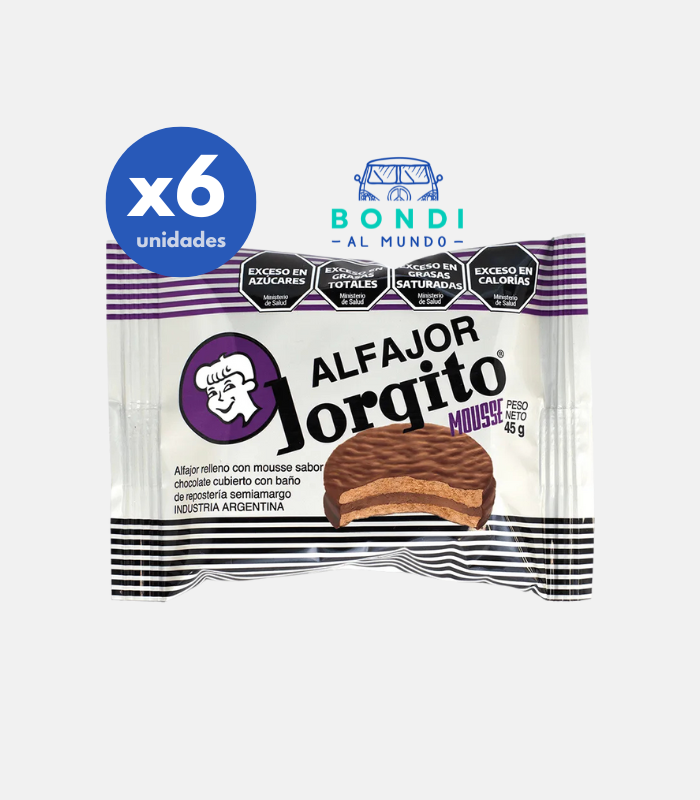 Alfajor Jorgito Mousse x 45 gramos. Pack 6 unidades. (270 gr.)